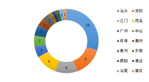 圖1 2017年第一季度FDA拒絕進(jìn)口的廣東農(nóng)食產(chǎn)品地市分布