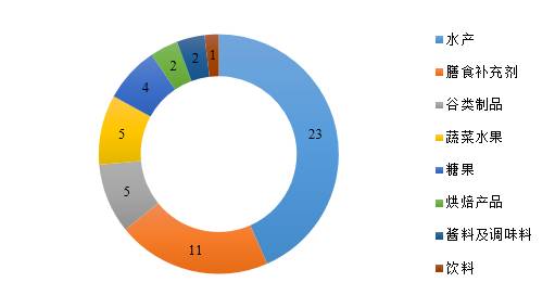 圖2 2017年第一季度FDA拒絕進(jìn)口的廣東農(nóng)食產(chǎn)品種類分布