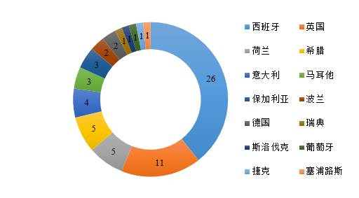 圖4 2017年第一季度RASFF通報(bào)中國食品的國家分布