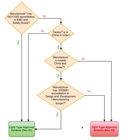 根據(jù)最新流程規(guī)定,NTRA進(jìn)口形式認(rèn)可方案有兩種,分別為 Doc 01: Light Type Approval Scheme (以下簡(jiǎn)稱Doc 01)和 Doc 02: Tight Type Approval Scheme Procedure(以下簡(jiǎn)稱Doc 02),絕大部分中國(guó)的制造商都被限定了只能選擇其中的Doc 02。