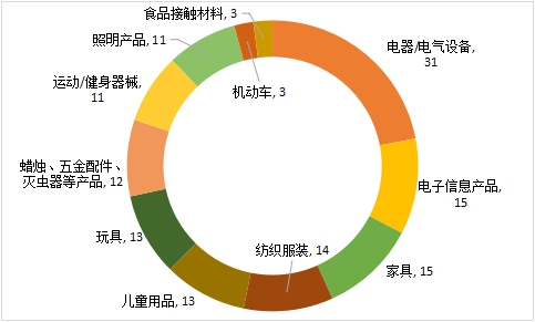 圖3 2018年歐盟RAPEX召回中國(guó)消費(fèi)品的類別分布