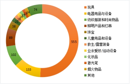 圖2 2018年美國(guó)CPSC召回中國(guó)出口消費(fèi)品的類別分布