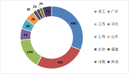 除針對(duì)農(nóng)食產(chǎn)品進(jìn)行監(jiān)管外,F(xiàn)DA還重點(diǎn)對(duì)進(jìn)口醫(yī)療產(chǎn)品進(jìn)行監(jiān)管。2018年FDA共通報(bào)拒絕進(jìn)口醫(yī)療產(chǎn)品6704批次,占FDA總通報(bào)數(shù)的46.2%。其中,中國(guó)被FDA拒絕進(jìn)口的醫(yī)療產(chǎn)品共1535批次(醫(yī)藥品258批次、醫(yī)療器械1277批次),占FDA拒絕進(jìn)口醫(yī)療產(chǎn)品的22.9%。浙江、廣東和江蘇出口美國(guó)的醫(yī)療產(chǎn)品被FDA拒絕進(jìn)口最多,分別為485、402和244批次(見(jiàn)圖6)。