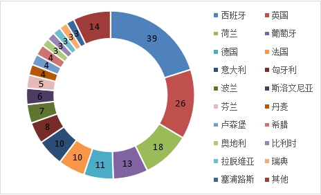 圖4 2018年歐盟RAPEX召回中國(guó)消費(fèi)品的國(guó)家分布