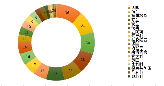 圖6 2019年一季度RASFF通報中國產(chǎn)食品的國家分布